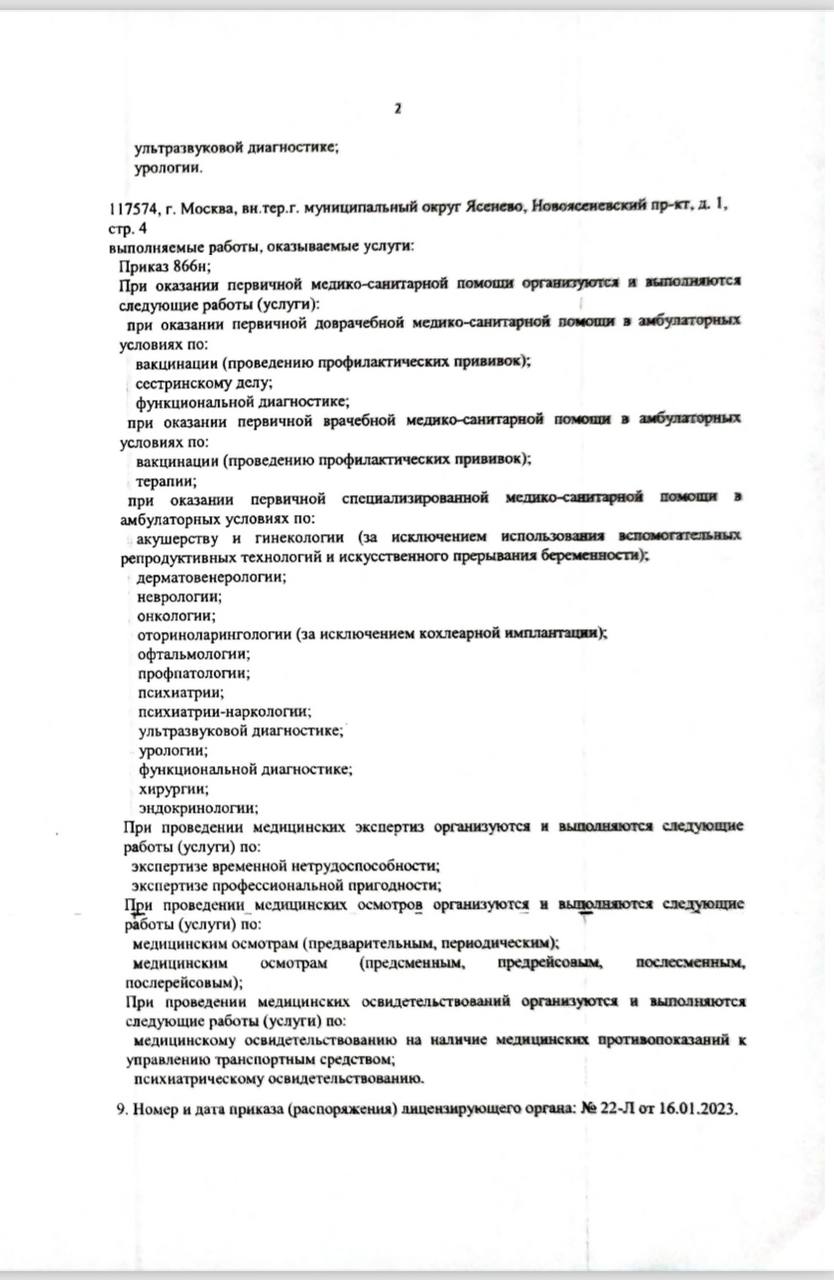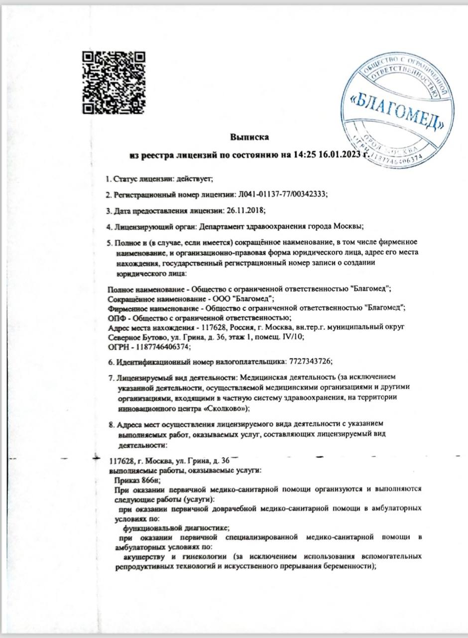 2 филиала в Москве и действующая лицензия на осуществление медицинской деятельности