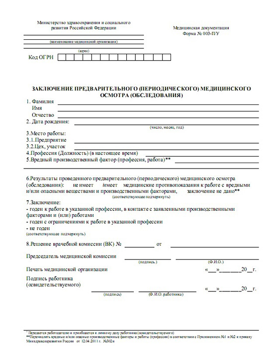 | Назначение | Медицинское заключение о допуске к работе с вредными и опасными производственными факторами |