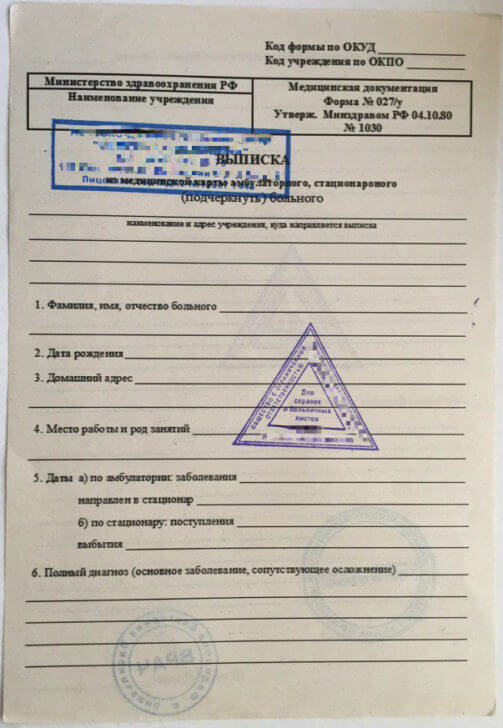 Оформление справки 027 У выписка из истории болезни